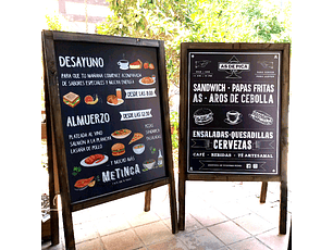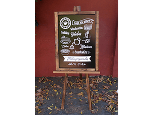 Publicita tus mejores productos con esta pizarra de 140 cm x 58 cm, va con grafica impresa o pintada en toda la superficie de la pizarra.